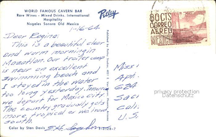 old postcard Nogales Sonora Word Famous Cavern Bar postalisch gelaufen