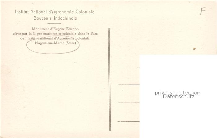 13787150 Nogent-sur-Marne 94 Monument d’Eugene Etienne Institut National d’Agronomie Coloniale postalisch nicht gelaufen Erhaltung siehe scans [WerneD78] Wern Katcode 11170094294052