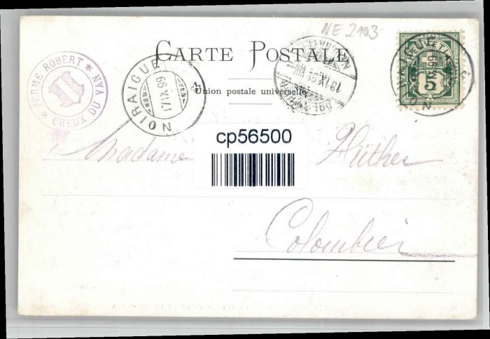 10720136 alte Postkarte Noiraigue [Stempelabschlag] postalisch gelaufen KatCode: 11470130430234