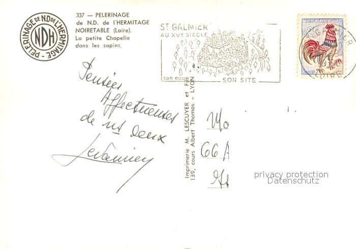 13578276 carte postale Noiretable Pelerinage de ND de l Hermitage postalisch gelaufen Erhaltung siehe scans [WerneD78] KatCode: 11170042142159