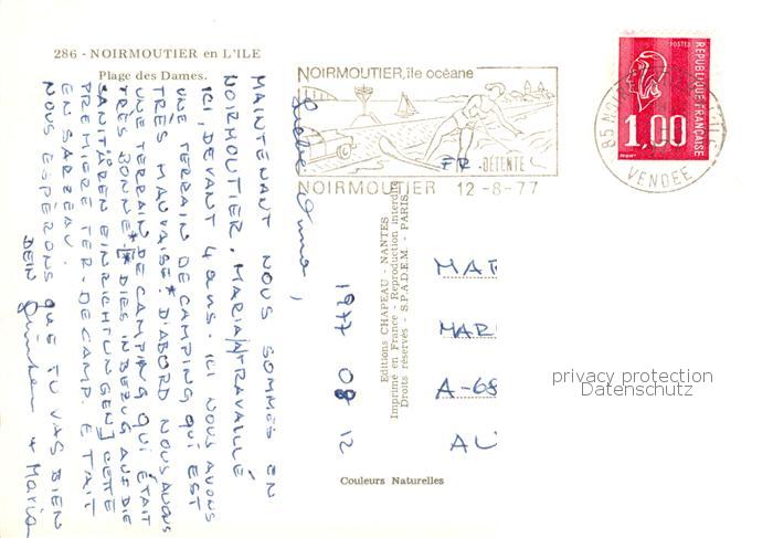 13848040 Noirmoutier-en-l Ile 85 Vendee Plage des Dames postalisch gelaufen Erhaltung siehe scans [WerneD78] carte postale Wern Katcode 11170085385163