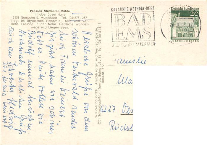 73876785 alte Postkarte Nomborn Panorama Gasthaus Pension Studenten Muehle postalisch gelaufen Erhaltung siehe scans [FriedD77] KatCode: 11110007143055