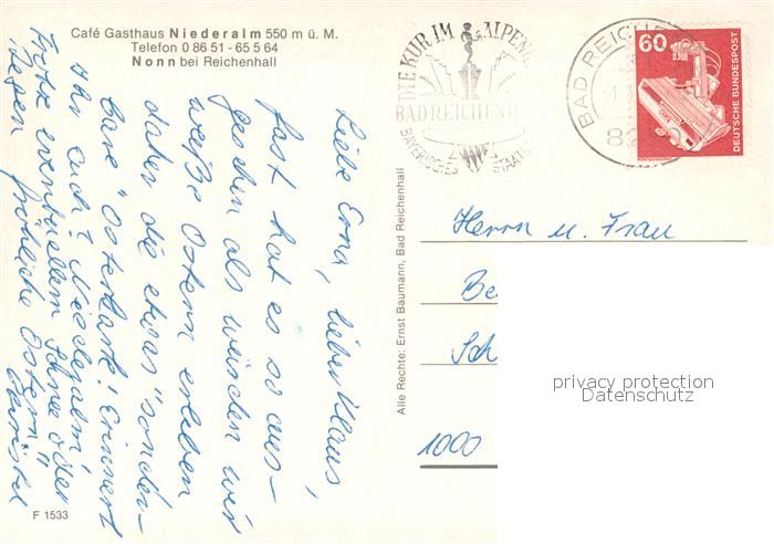 73650855 alte Postkarte Nonn Oberbayern Cafe Gasthaus Niederalm postalisch gelaufen Erhaltung siehe scans [WerneD78] KatCode: 11110009172114