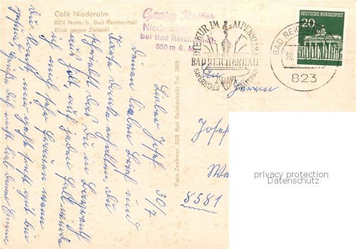 73859417 alte Postkarte Nonn Oberbayern Cafe Niederalm Blick gegen Zwiesel postalisch gelaufen Erhaltung siehe scans [FriedD77] KatCode: 11110009172114