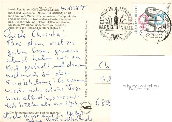 73651132 alte Postkarte Nonn Oberbayern Hotel Restaurant Cafe Neu-Meran Garten Kueche Hallenbad Alpenblick postalisch gelaufen Erhaltung siehe scans [FriedD77] KatCode: 11110009172114
