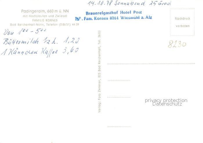 73762786 Nonn Oberbayern Padingeralm mit Hochstaufen und Zwiesel postalisch nicht gelaufen Erhaltung siehe scans [FriedD77] KatCode: 11110009172114