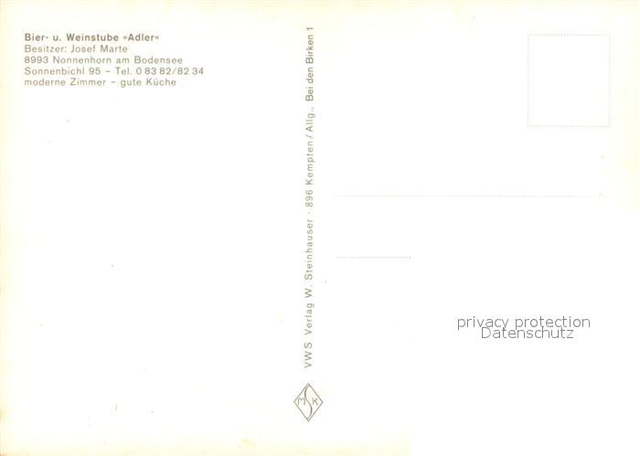 73664559 Nonnenhorn Bodensee Bier und Weinstube Adler postalisch nicht gelaufen Erhaltung siehe scans [WerneD78] KatCode: 11110009776120