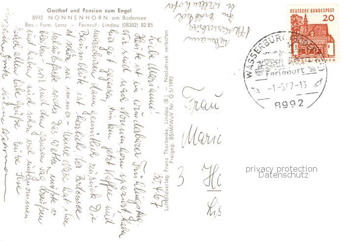 73821178 alte Postkarte Nonnenhorn Bodensee Fliegeraufnahme mit Gasthof Pension zum Engel postalisch gelaufen Erhaltung siehe scans [WerneD78] KatCode: 11110009776120