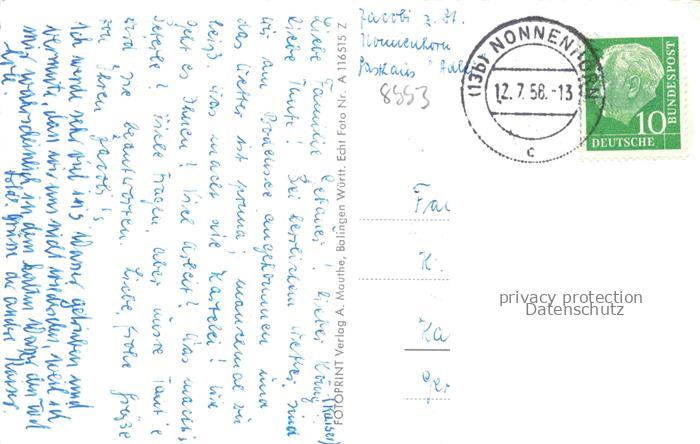 74101231 alte Postkarte Nonnenhorn Bodensee Seepanorama Weinstube zur Kapelle Gasthof Engel Kapelle Fliegeraufnahme Pension Lanz Anlegesteg postalisch gelaufen Erhaltung siehe scans [WerneD78] KatCode: 11110009776120