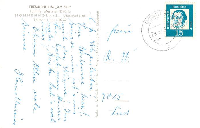 73899638 alte Postkarte Nonnenhorn Fremdenheim Am See postalisch gelaufen Erhaltung siehe scans [FriedD77] KatCode: 11110009776120