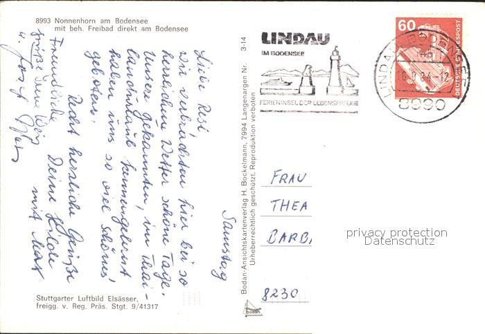 72257643 alte Postkarte Nonnenhorn Hafen Freibad Pfaender Bregenzerwald Fliegeraufnahme postalisch gelaufen Erhaltung siehe scans KatCode: 11110009776120