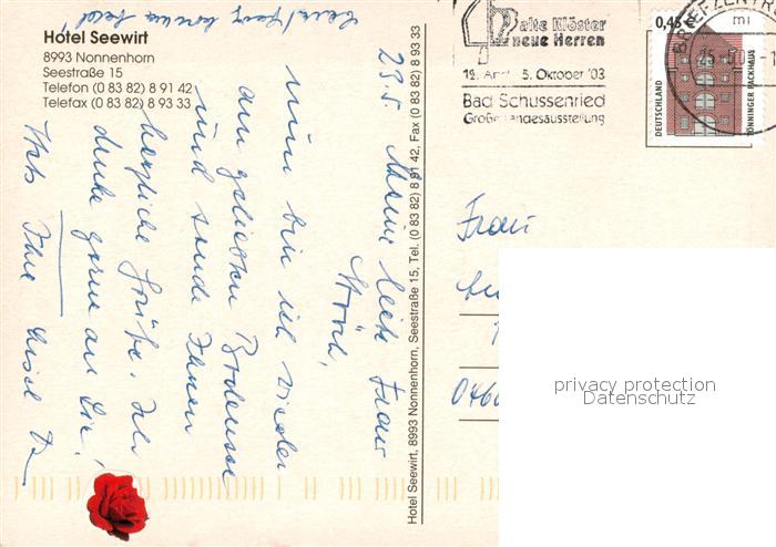 73660963 alte Postkarte Nonnenhorn Hotel Seewirt Landhaus Stammhaus Seehaus postalisch gelaufen Erhaltung siehe scans [FriedD77] KatCode: 11110009776120