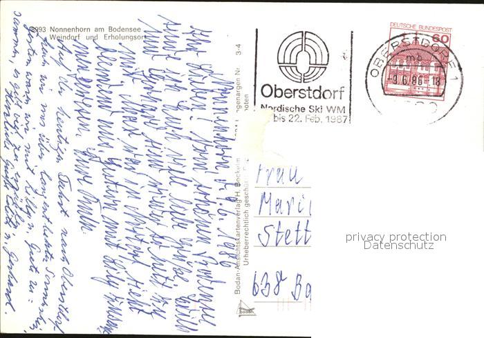72417159 alte Postkarte Nonnenhorn Kirche Hafen postalisch gelaufen Erhaltung siehe scans KatCode: 11110009776120