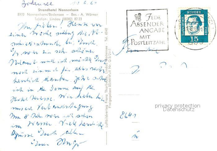 73163924 alte Postkarte Nonnenhorn Strandhotel Nonnenhorn Fliegeraufnahme postalisch gelaufen Erhaltung siehe scans [KathaD81] KatCode: 11110009776120
