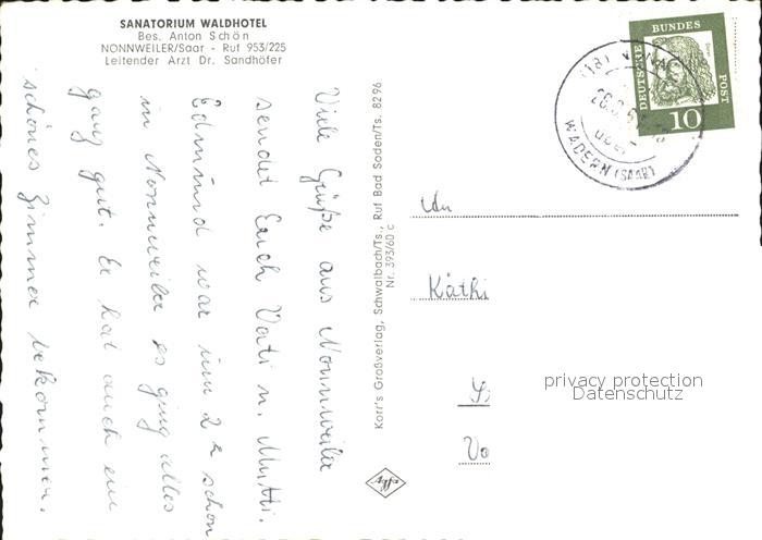 72145492 alte Postkarte Nonnenweiler Sanatorium Waldhotel postalisch gelaufen Erhaltung siehe scans KatCode: 11110008437100