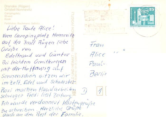 73946810 Nonnevitz Dranske Campingplatz Strand Kiosk postalisch nicht gelaufen Erhaltung siehe scans [WerneD78] KatCode: 11110013061008
