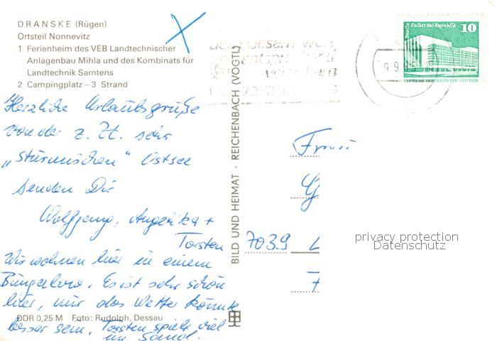 73865207 alte Postkarte Nonnevitz Dranske Ferienheim des VEB Landtechn Anlagenbau Campingplatz Strand postalisch gelaufen Erhaltung siehe scans [WerneD78] KatCode: 11110013061008