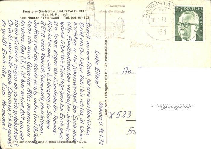72071064 alte Postkarte Nonrod Pension Restaurant Haus Talblick postalisch gelaufen Erhaltung siehe scans KatCode: 11110006432007