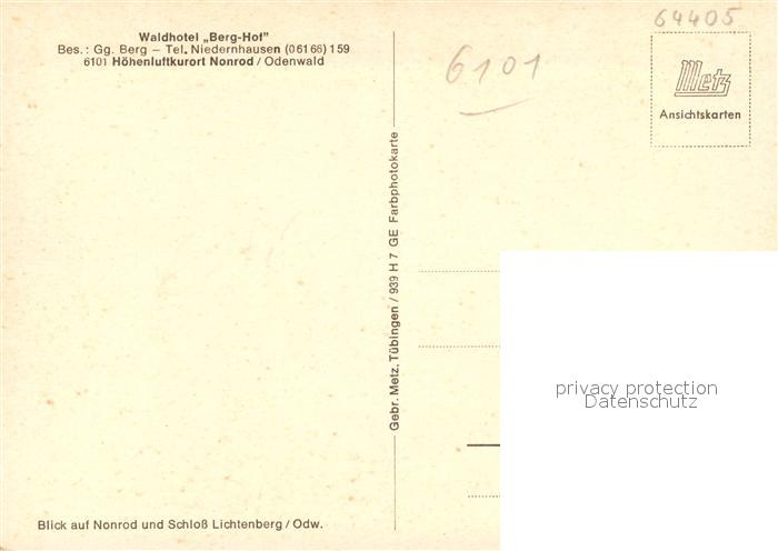 73596438 Nonrod Waldhotel Berghof im Odenwald postalisch nicht gelaufen Erhaltung siehe scans [FriedD77] KatCode: 11110006432007