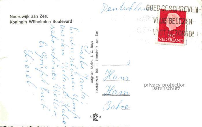 74150820 old postcard NOORDWIJK aan Zee Nordwijk aan Zee NL Koningin-Wilhelmina-Boulevard Strand Promenade Autos Strandkoerbe postalisch gelaufen Erhaltung siehe scans [Karloger] KatCode: 11370