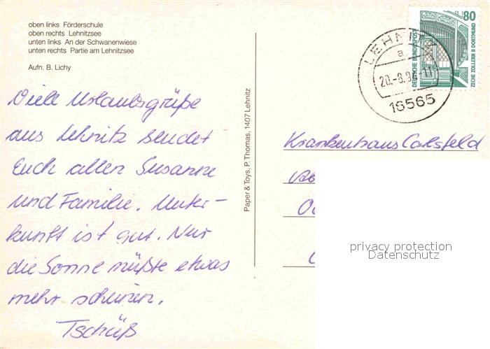 72639659 alte Postkarte Nordbahn Lehnitz Foerderschule Lehnitzsee Schwanenwiese postalisch gelaufen Erhaltung siehe scans [FriedD77] KatCode: 11110012065256