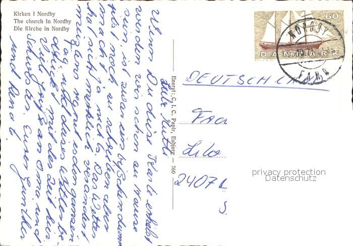 old postcard Nordby Fano Kirken Kirche postalisch gelaufen Erhaltung siehe scans