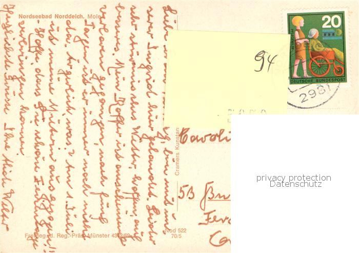 73776193 alte Postkarte Norddeich Norden Nordseebad Mole Dampfer Faehre postalisch gelaufen Fliegeraufnahme Erhaltung siehe scans [FriedD77] KatCode: 11110003452019