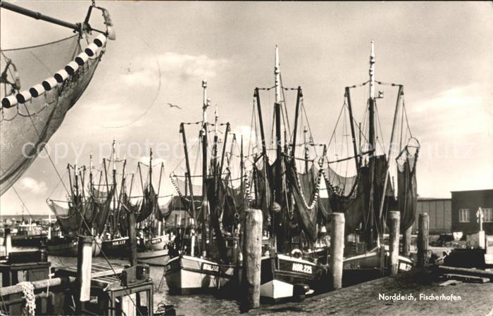 72045428 alte Postkarte Norddeich Ostfriesland Fischerhafen Fischkutter postalisch gelaufen Erhaltung siehe scans KatCode: 11110003452019