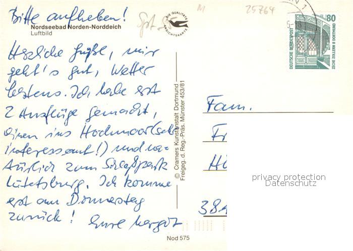 73648226 alte Postkarte Norddeich Ostfriesland Fliegeraufnahme postalisch gelaufen Erhaltung siehe scans [FriedD77] KatCode: 11110003452019
