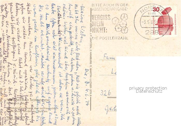 73647892 alte Postkarte Norddeich Ostfriesland Fliegeraufnahme postalisch gelaufen Erhaltung siehe scans [WerneD78] KatCode: 11110003452019