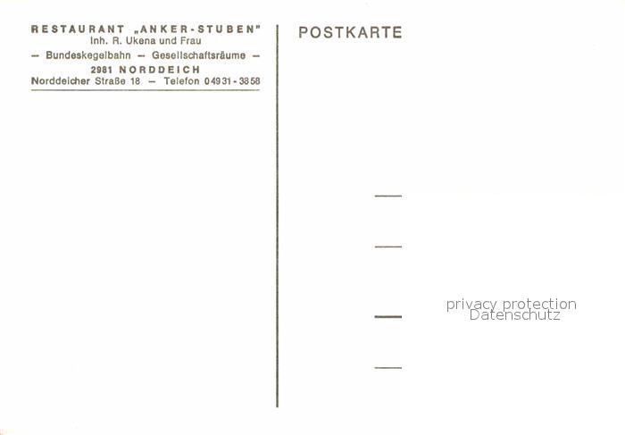 72885033 Norddeich Ostfriesland Restaurant Anker Stuben postalisch nicht gelaufen Erhaltung siehe scans [FriedD77] KatCode: 11110003452019