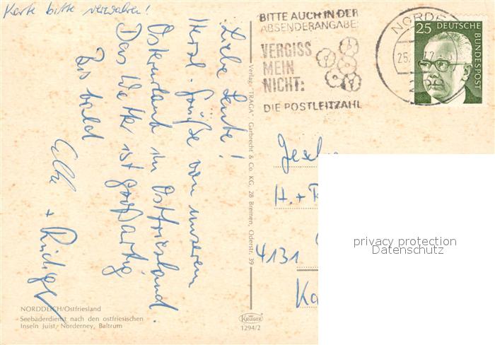 73295980 alte Postkarte Norddeich Ostfriesland Seebaederdienst nach den ostfriesischen Inseln Juist Norderney Baltrum postalisch gelaufen Erhaltung siehe scans [FriedD77] KatCode: 11110003452019