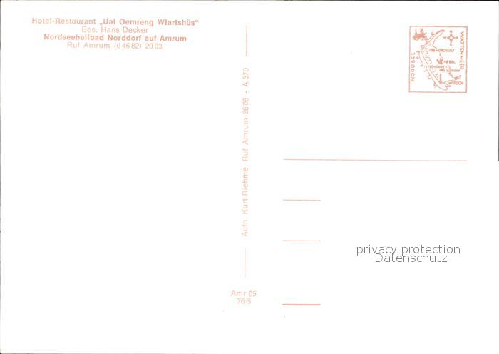 72549465 Norddorf Amrum Hotel Restaurant Ual Oemreng Wiartshues postalisch nicht gelaufen Erhaltung siehe scans [AndreD76 kv022box] KatCode: 11110001054089