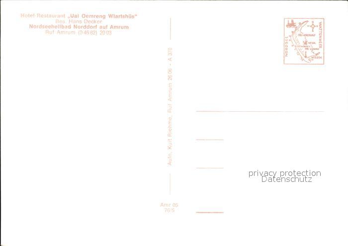 72549628 Norddorf Amrum Hotel Uai Oemreng Wlartshues postalisch nicht gelaufen Erhaltung siehe scans [AndreD76 kv022box] KatCode: 11110001054089