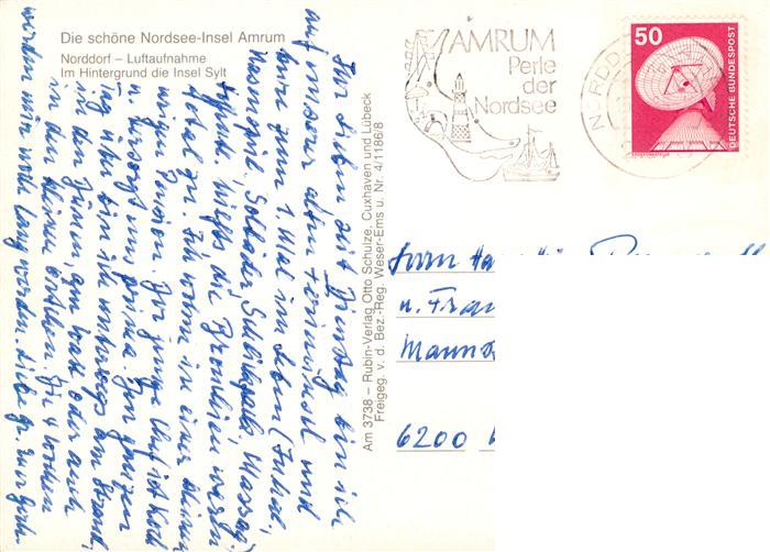 73897075 alte Postkarte Norddorf Amrum im Hintergrund Insel Sylt postalisch gelaufen Fliegeraufnahme Erhaltung siehe scans [FriedD77] KatCode: 11110001054089