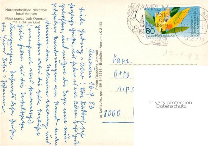 73148996 alte Postkarte Norddorf Amrum Nordseeheilbad Nordseeinsel Fliegeraufnahme postalisch gelaufen Erhaltung siehe scans [FriedD77] KatCode: 11110001054089