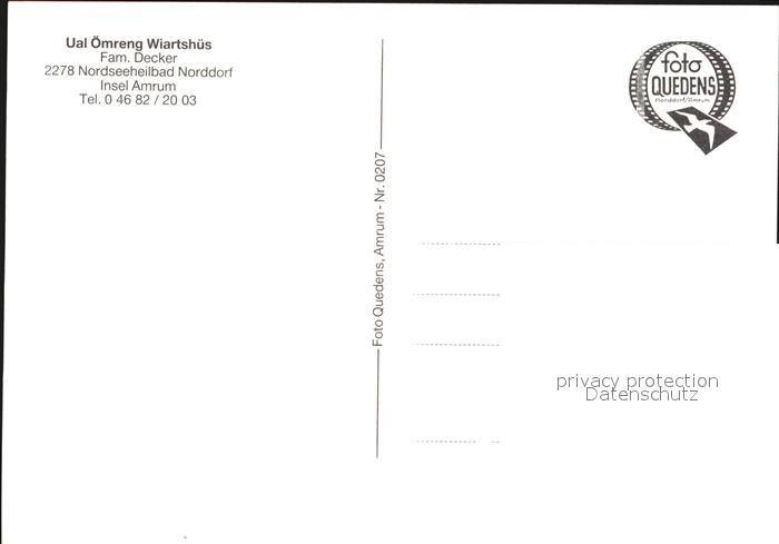72549438 Norddorf Amrum Ual oemreng Wiartshues postalisch nicht gelaufen Erhaltung siehe scans [AndreD76 kv022box] KatCode: 11110001054089
