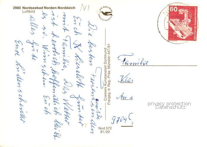 73050854 alte Postkarte Norden Norddeich Ostfriesland Fliegeraufnahme postalisch gelaufen Erhaltung siehe scans [KathaD81] KatCode: 11110003452019