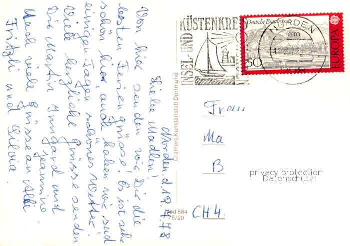 73305899 alte Postkarte Norden Norddeich Ostfriesland Stadtansicht Muehle Bootshafen Duenenweg postalisch gelaufen Erhaltung siehe scans [KathaD81] KatCode: 11110003452019