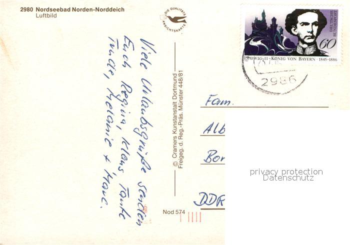 72941096 alte Postkarte Norden Ostfriesland Fliegeraufnahme Hafen postalisch gelaufen Erhaltung siehe scans [LiesaD40] KatCode: 11110003452019