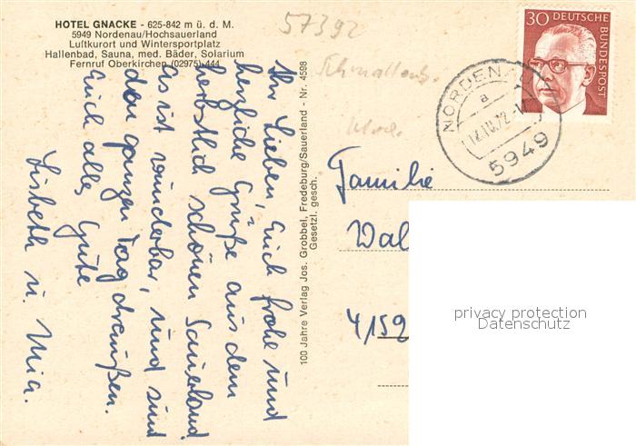73646116 alte Postkarte Nordenau Hotel Gnacke postalisch gelaufen Erhaltung siehe scans [WerneD78] KatCode: 11110005958040