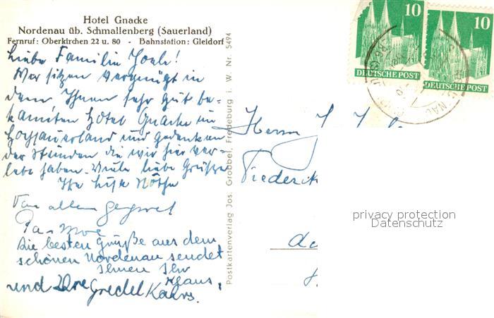 73571661 alte Postkarte Nordenau Hotel Gnacke Schmallenberg postalisch gelaufen Erhaltung siehe scans [LiesaD40] KatCode: 11110005958040
