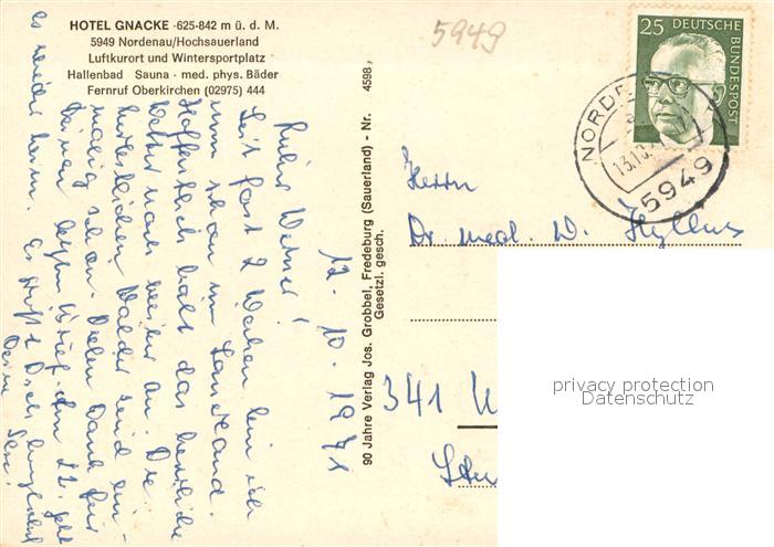 73745872 alte Postkarte Nordenau Hotel Gnacke postalisch gelaufen Erhaltung siehe scans [FriedD77] KatCode: 11110005958040