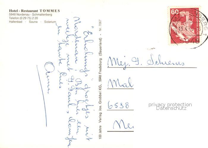 73306159 alte Postkarte Nordenau Hotel Restaurant Tommes Gastraeume Rezeption Hallenbad Zimmer postalisch gelaufen Erhaltung siehe scans [WerneD78] KatCode: 11110005958040