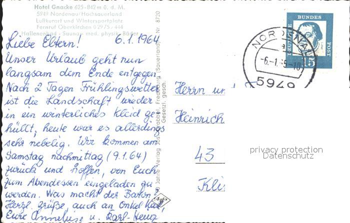 72093488 alte Postkarte Nordenau Ortspartie Panorama Wintersportplatz Hotel Gnacke postalisch gelaufen Erhaltung siehe scans KatCode: 11110005958040