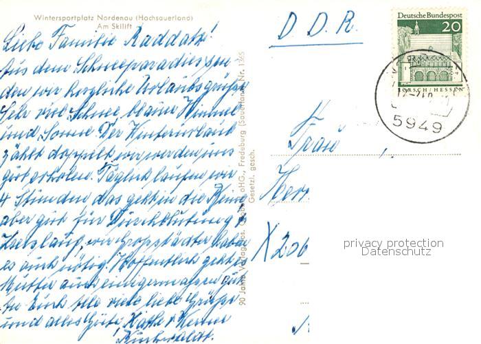72934043 alte Postkarte Nordenau Schlepplift postalisch gelaufen Erhaltung siehe scans [WerneD78] KatCode: 11110005958040