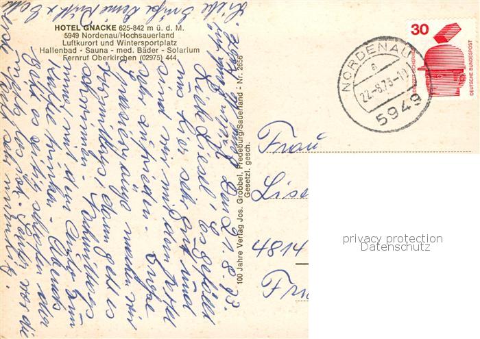 74052337 alte Postkarte Nordenau Schmallenberg Hotel Gnacke Terrasse postalisch gelaufen Erhaltung siehe scans [WerneD78] KatCode: 11110005958040