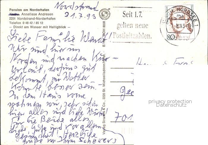 72569697 alte Postkarte Norderhafen Pension am Norderhafen postalisch gelaufen Erhaltung siehe scans [LiesaD40] KatCode: 11110001054090