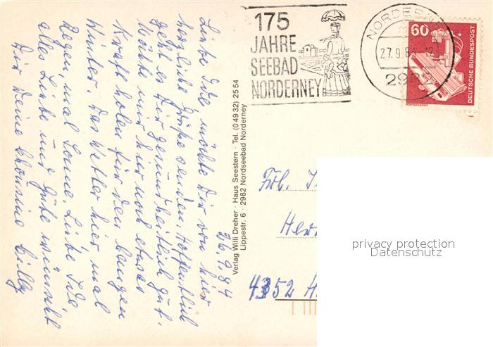 73082228 alte Postkarte Norderney Nordseebad Abendstimmung Fliegeraufnahme Muehle Reiter Strand postalisch gelaufen Erhaltung siehe scans [KathaD81] KatCode: 11110003452020