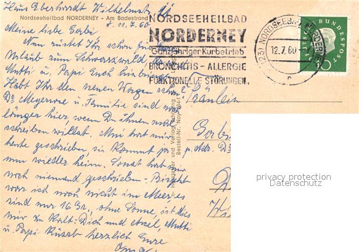 73294260 alte Postkarte Norderney Nordseebad Badestrand Strandkorb postalisch gelaufen Erhaltung siehe scans [FriedD77] KatCode: 11110003452020